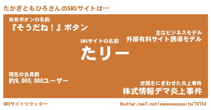 | 肩書あだ名 | 『たかぎともひろ店長』 |