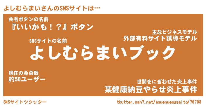 | 胡散臭い通販商品みたいなあだ名 | 『億万長者になれるブレスレット…その名も「よしむらまい」』 |