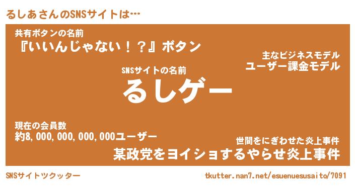 | 男性向けラノベタイトル風あだ名 | 『るしあの憂鬱』 |