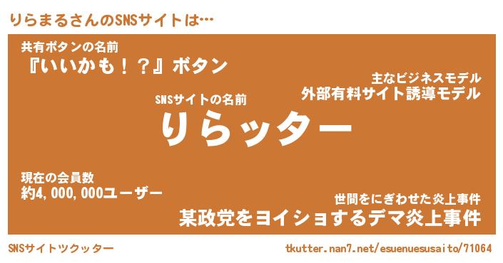 | 肩書あだ名 | 『りらまるCEO』『りらまる国家主席』 |