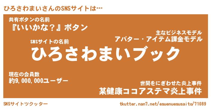 | 肩書あだ名 | 『ひろさわまい社長』『ひろさわまい団長』 |