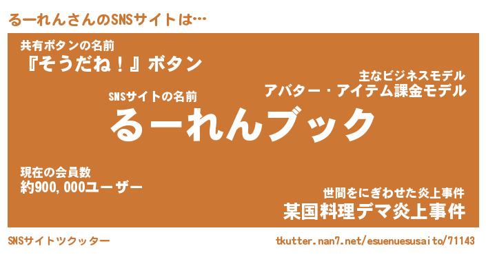 | 肩書あだ名 | 『るーれん店長』『るーれん大統領』 |