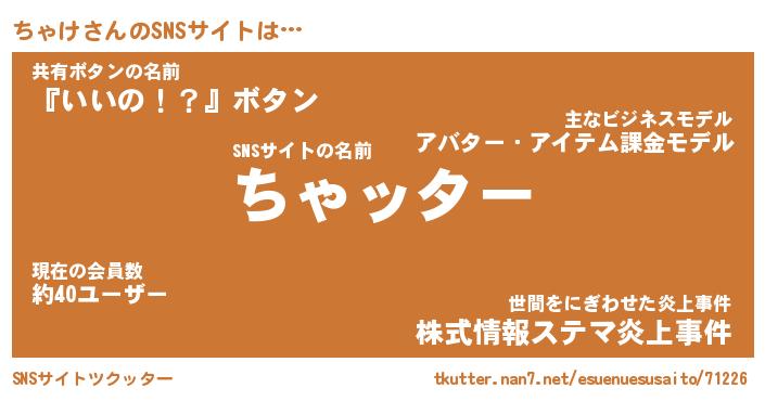 | 胡散臭い通販商品みたいなあだ名 | 『億万長者になれる霊験あらたかなお札…その名も「ちゃけ」』 |
