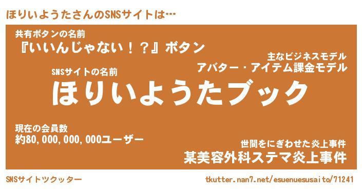| 胡散臭い通販商品みたいなあだ名 | 『億万長者になれる霊験あらたかなお札…その名も「ほりいようた」』 |