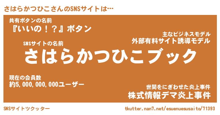 | 肩書あだ名 | 『さはらかつひこ社長』 |