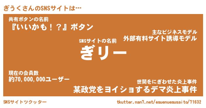 | ファンタジー風あだ名 | 『ギウフェル』『エターナルギウクー』 |