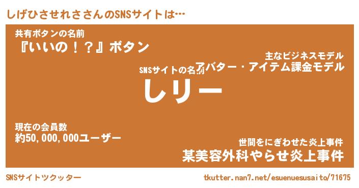 | 男性向けラノベタイトル風あだ名 | 『しげひさせれさの憂鬱』 |