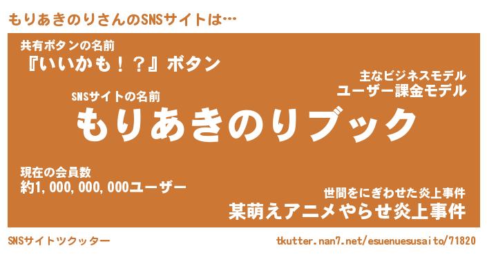 | 男性向けラノベタイトル風あだ名 | 『モリアキノリアートオンライン』 |