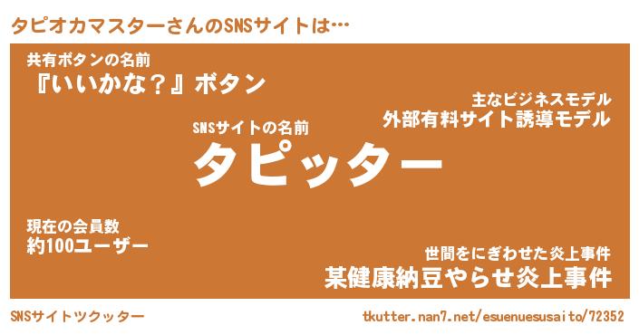 | 胡散臭い通販商品みたいなあだ名 | 『億万長者になれる霊験あらたかなお札…その名も「タピオカマスター」』 |