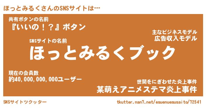 | 胡散臭い通販商品みたいなあだ名 | 『億万長者になれる霊験あらたかなお札…その名も「ほっとみるく」』 |