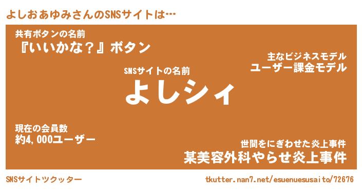 | ヒーロー風カッコイイあだ名 | 『スーパーヨシオアユミ』『魔戒騎士ヨシ』 |