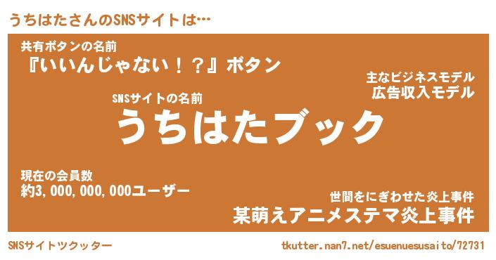 | 意味不明あだ名 | 『ペロリンうちはた』『永久保存うちはた』 |
