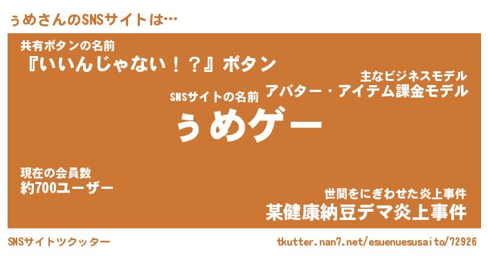 | ポケモン風あだ名 | 『ゥメチュウ』『ゥメダネ』『ヒゥメ』 |