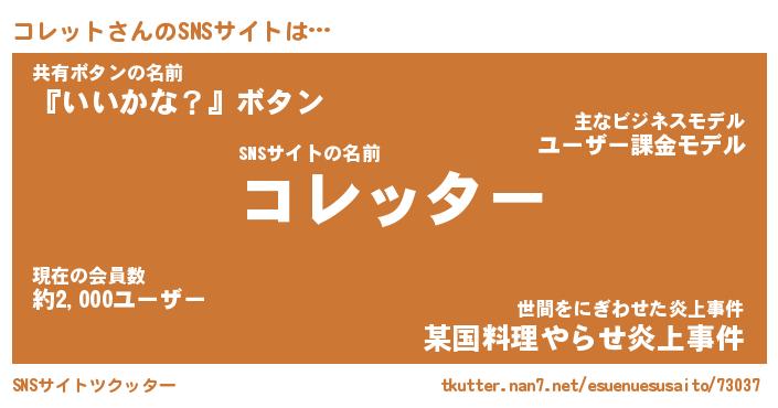 | 意味不明あだ名 | 『ペロリンコレット』『永久保存コレット』 |
