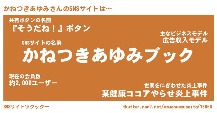 | 男性向けラノベタイトル風あだ名 | 『カネツキアユミアートオンライン』 |
