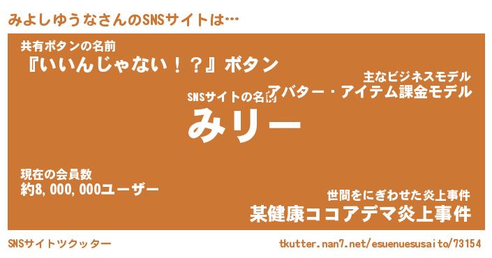 | ヒーロー風カッコイイあだ名 | 『スーパーミヨシユウナ』『黄金騎士ミヨ』 |