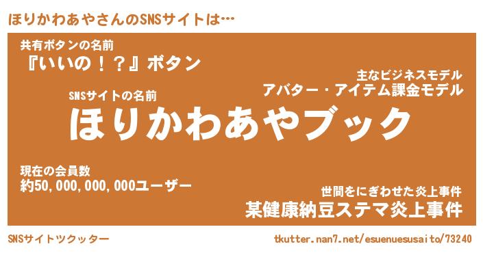 | 胡散臭い通販商品みたいなあだ名 | 『億万長者になれるブレスレット…その名も「ほりかわあや」』 |