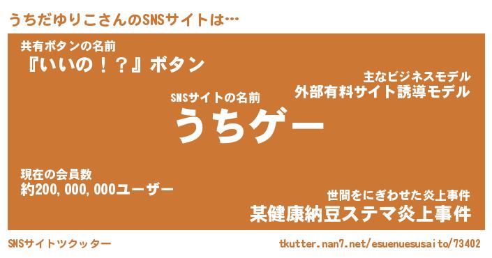 | 肩書あだ名 | 『うちだゆりこ社長』『うちだゆりこ塾長』 |