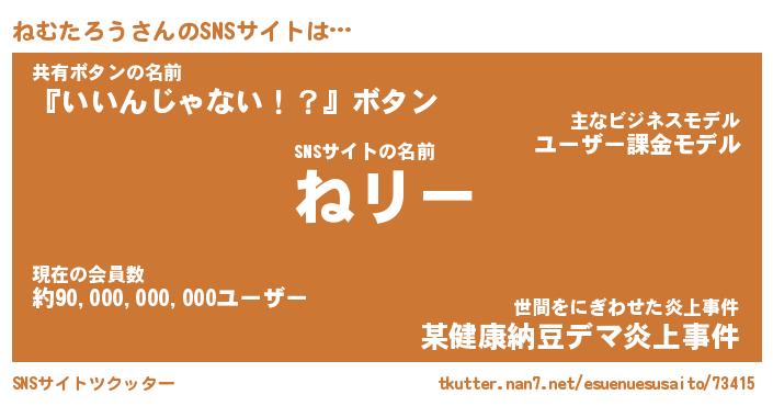 | 肩書あだ名 | 『ねむたろう店長』『ねむたろう総理大臣』 |