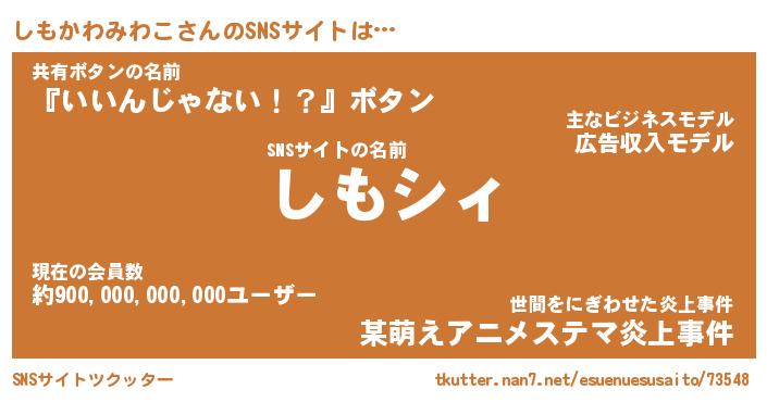 | 胡散臭い通販商品みたいなあだ名 | 『必ず成功する霊験あらたかなお札…その名も「しもかわみわこ」』 |