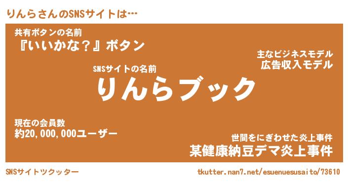 | 肩書あだ名 | 『りんら店長』『りんら国家主席』 |