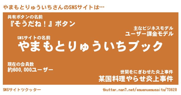 | 肩書あだ名 | 『やまもとりゅういち店長』 |