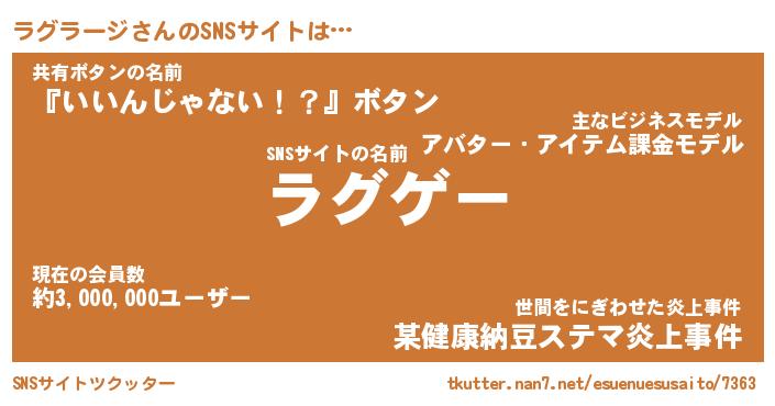 | ファンタジー風あだ名 | 『ラグフェル』『エターナルラグラージー』 |