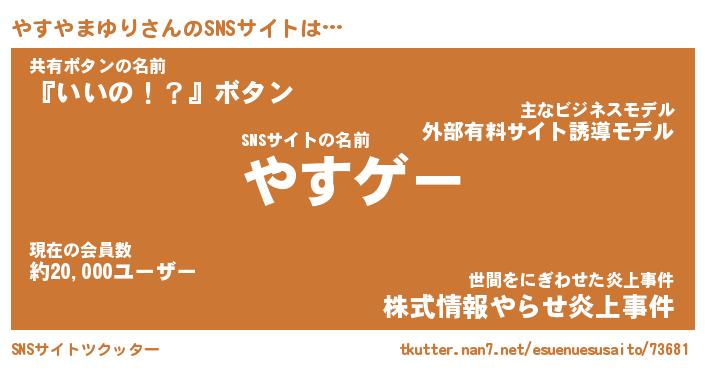 | 肩書あだ名 | 『やすやまゆりCEO』『やすやまゆり班長』 |
