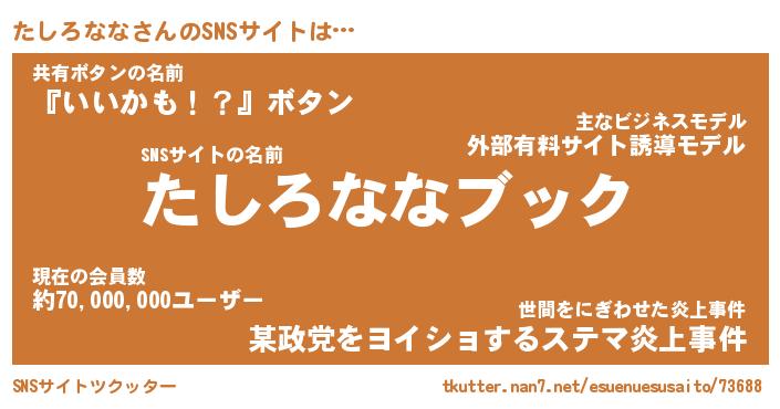 | 胡散臭い通販商品みたいなあだ名 | 『億万長者になれるブレスレット…その名も「たしろなな」』 |