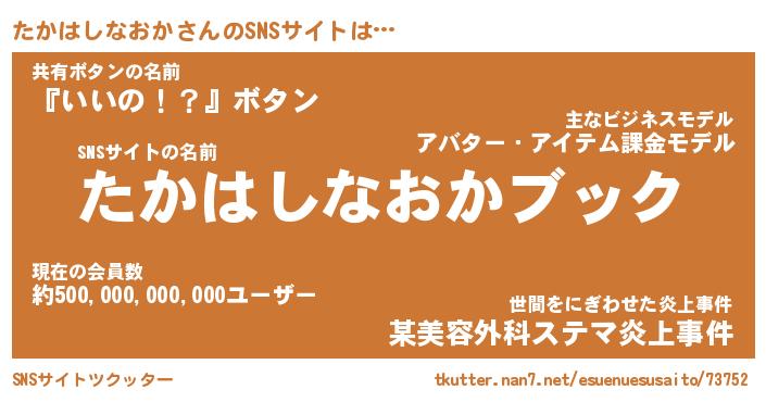 | 男性向けラノベタイトル風あだ名 | 『タカハシナオカアートオンライン』 |