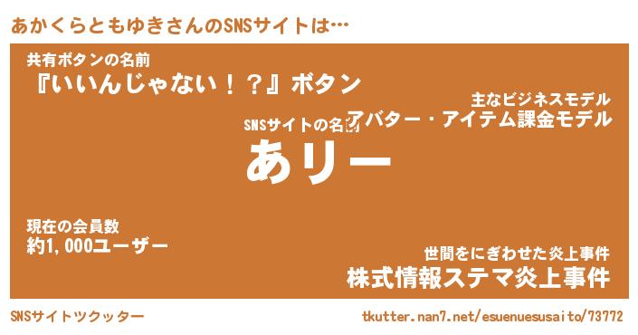 | 肩書あだ名 | 『あかくらともゆき御曹司』 |