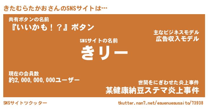 | 肩書あだ名 | 『きたむらたかお店長』 |