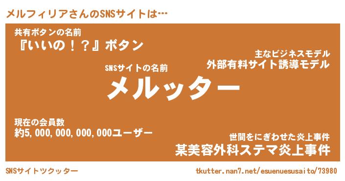 | 胡散臭い通販商品みたいなあだ名 | 『億万長者になれるブレスレット…その名も「メルフィリア」』 |