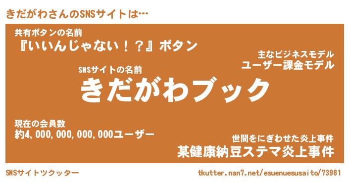 | ファンタジー風あだ名 | 『キダフェル』『エターナルキダガワー』 |