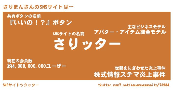 | 胡散臭い通販商品みたいなあだ名 | 『億万長者になれる霊験あらたかなお札…その名も「さりまん」』 |