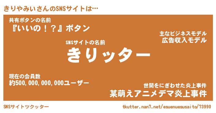 | 胡散臭い通販商品みたいなあだ名 | 『億万長者になれる水晶球…その名も「きりやみい」』 |