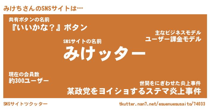 | 肩書あだ名 | 『みけちCEO』『みけち国家主席』 |
