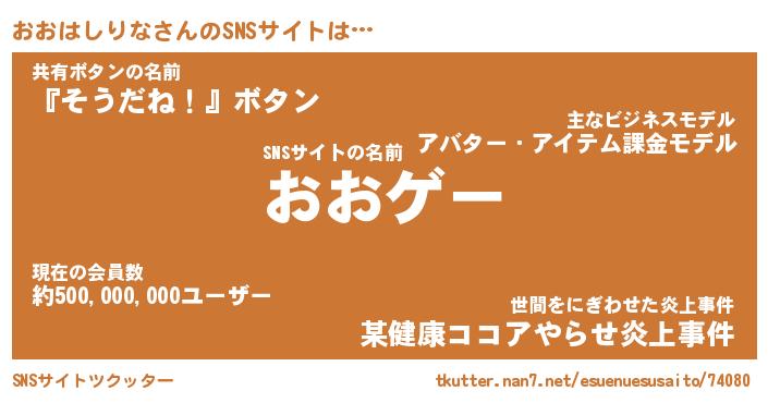 | ヘコむあだ名 | 『おおにー』『なまこ酢』『おおっ子』 |