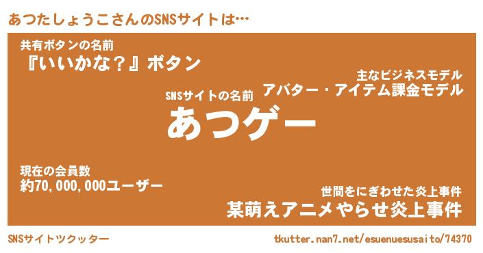| 肩書あだ名 | 『あつたしょうこ御曹司』 |