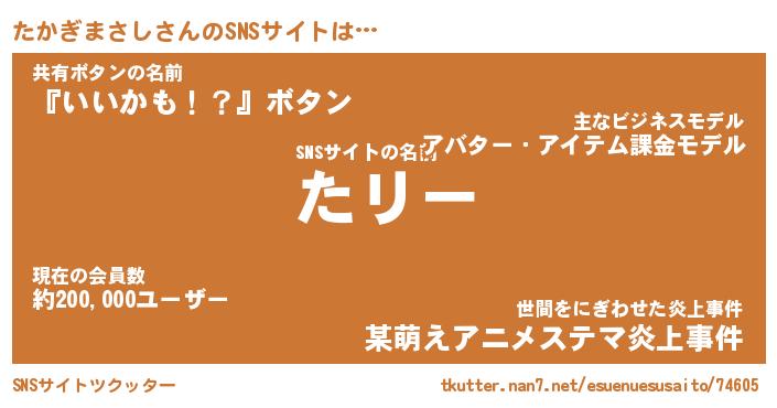 | 肩書あだ名 | 『たかぎまさし御曹司』 |