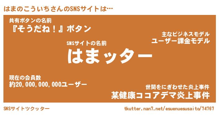 | 肩書あだ名 | 『はまのこういち御曹司』 |