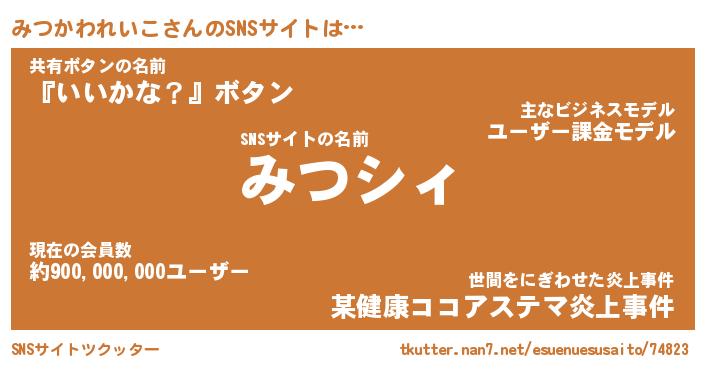 | 男性向けラノベタイトル風あだ名 | 『みつかわれいこの憂鬱』 |