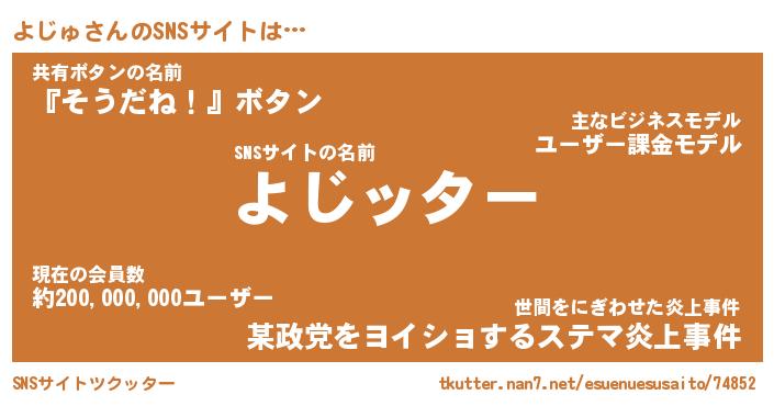 | 胡散臭い通販商品みたいなあだ名 | 『億万長者になれる水晶球…その名も「よじゅ」』 |