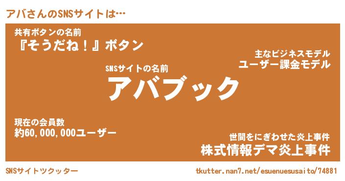 | ファンタジー風あだ名 | 『アバフェル』『エターナルアバー』 |