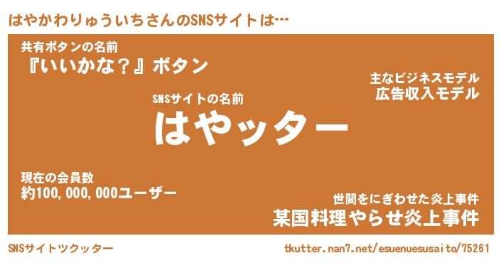 | ポケモン風あだ名 | 『ハヤチュウ』『ハヤカダネ』 |