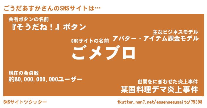 | 肩書あだ名 | 『ごうだあすか社長』『ごうだあすか塾長』 |