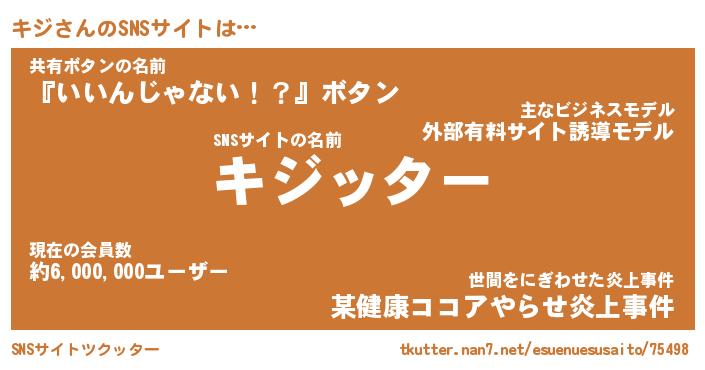 | 肩書あだ名 | 『キジCEO』『キジ総理大臣』 |