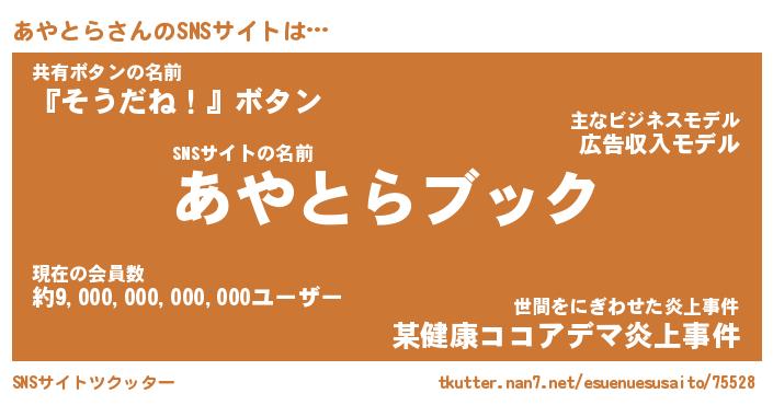 | 意味不明あだ名 | 『ペロリンあやとら』『永久保存あやとら』 |