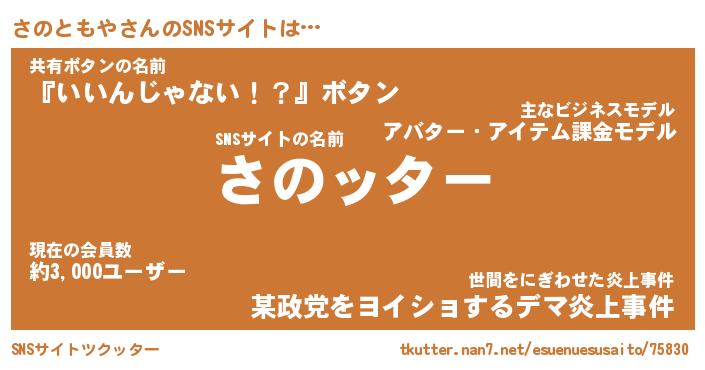 | 男性向けラノベタイトル風あだ名 | 『サノトモヤアートオンライン』 |