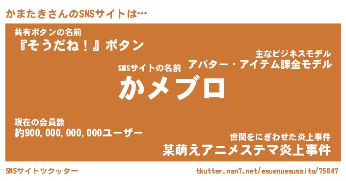| 男性向けラノベタイトル風あだ名 | 『カマタキアートオンライン』 |